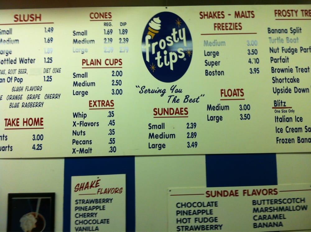 Welcome to Frosty Tips, a charming ice cream haven located at 700 W Jefferson St in Shorewood, IL. This delightful spot captures the essence of nostalgic treats that have been adored for generations. Their menu shines with a variety of shakes and malts, including classic options like the Boston Shake and decadent Boston Malt, which satisfy every sweet tooth.